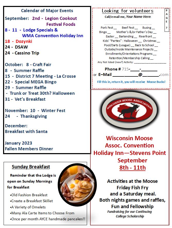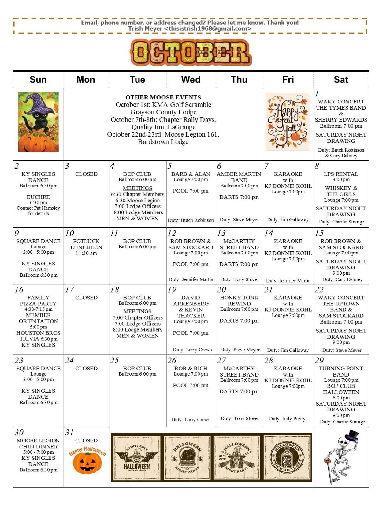 Moose Lodge Calendar Of Events
